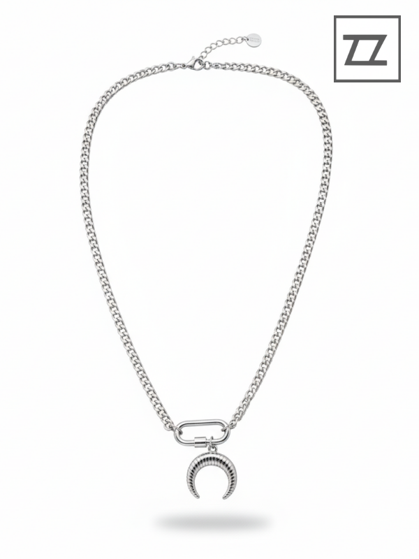 Este collar es ideal para quienes buscan joyería con personalidad y un fuerte simbolismo. El colgante de Luna Creciente es un símbolo ancestral de poder femenino, intuición y nuevos comienzos, presentado aquí con un estilo moderno y atrevido.