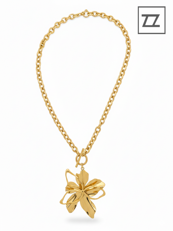 - Diseño Vanguardista: El colgante de flor en relieve presenta una espectacular textura tridimensional, creando un efecto de movimiento y lujo que destaca sobre cualquier prenda.